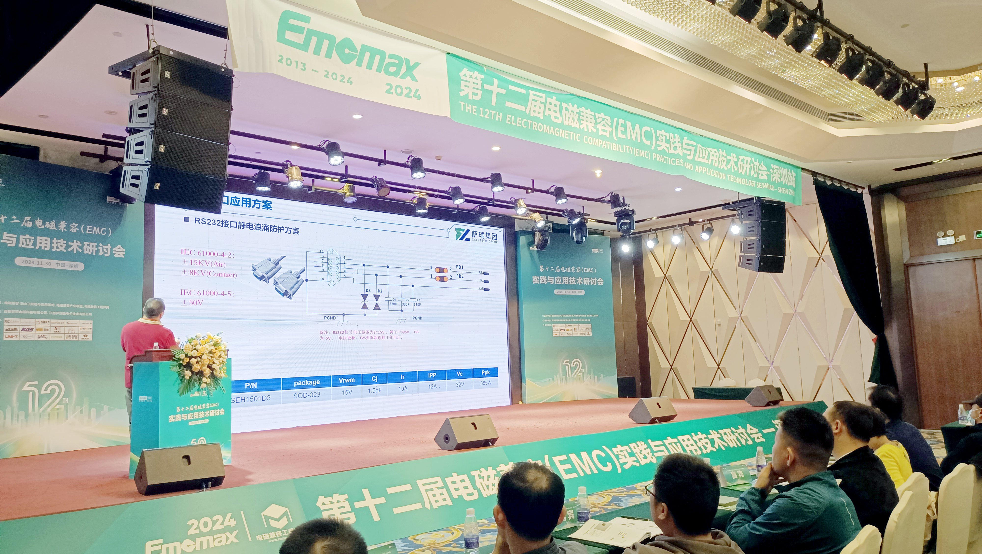 2024年11月30日,第十二届电磁兼容(EMC)实践与应用技术研讨会在深圳隆重举行,并于当日圆满闭幕。本次大会汇聚了来自全国各地的电磁兼容领域专家学者、知名企业代表,共同探讨EMC技术的最新发展与实践应用。江西w88win微电子作为国内领先的半导体企业,应邀参加了本次盛会,展示了公司在EMC领域的创新成果和解决方案。
